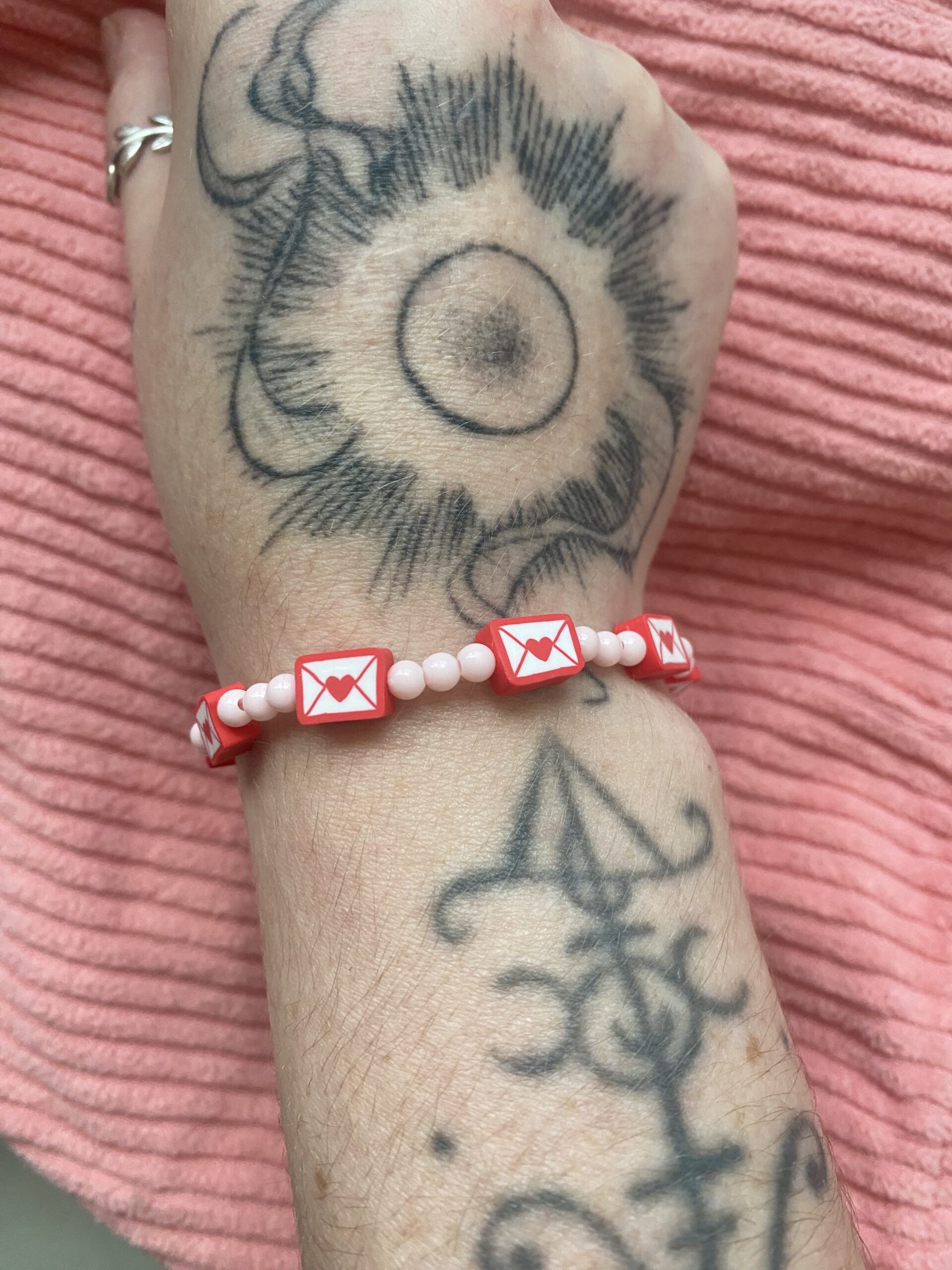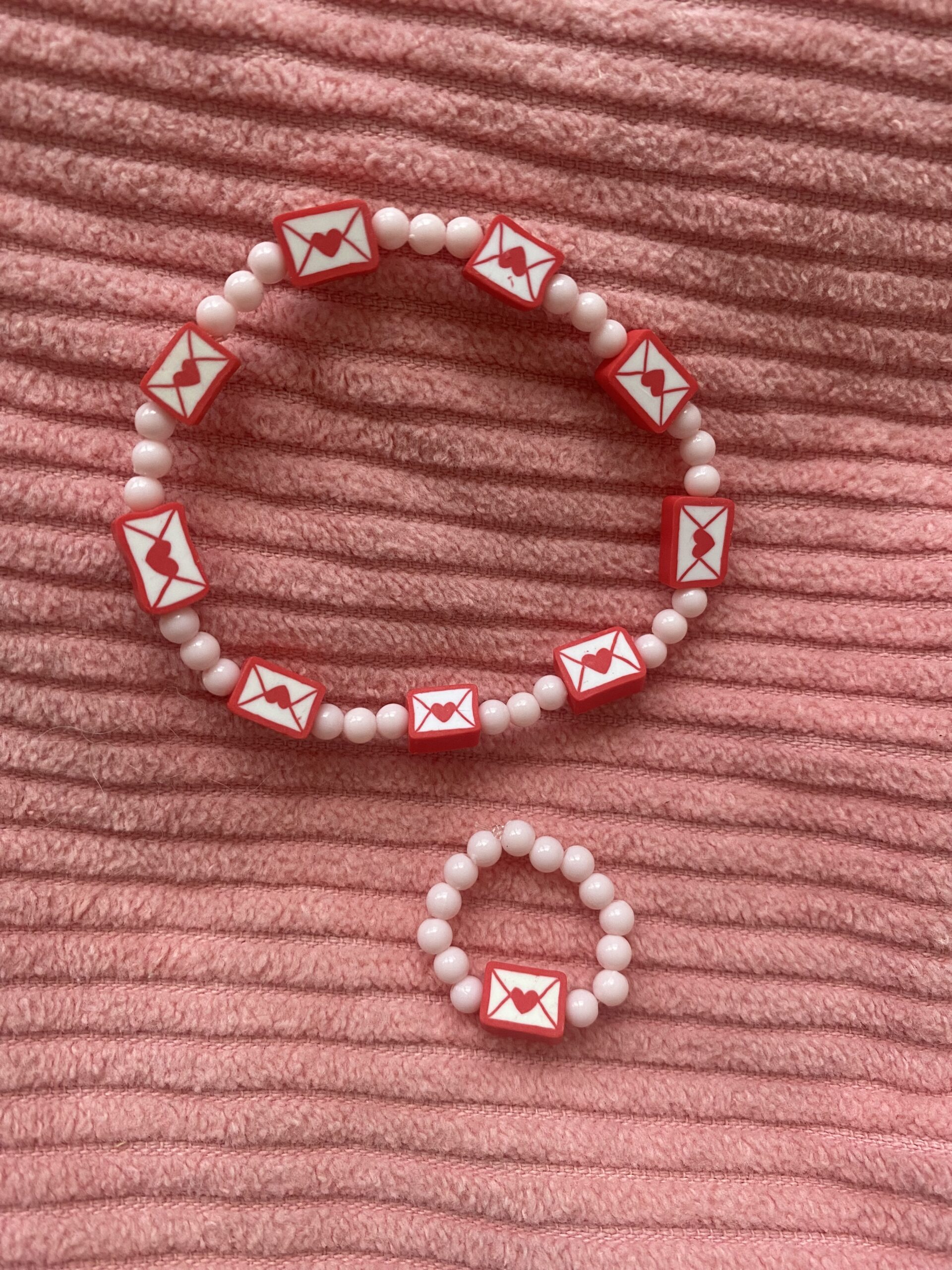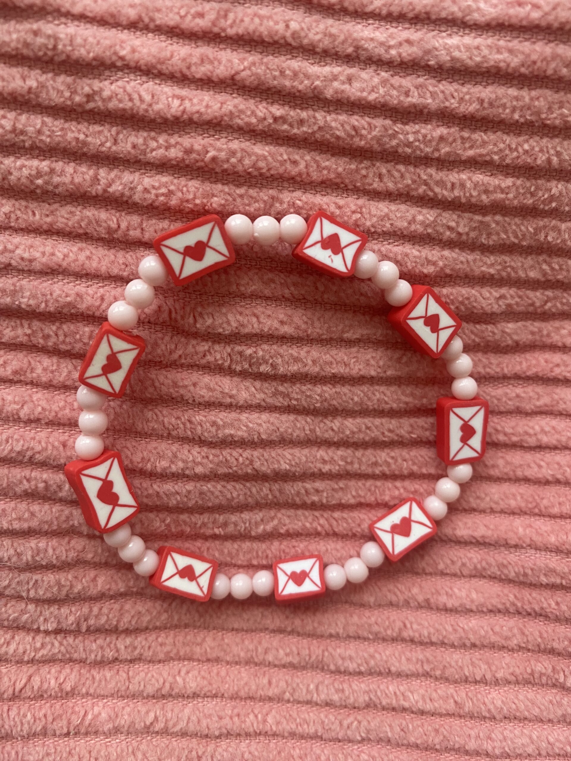 Un bracelet avec des petites enveloppes cœur